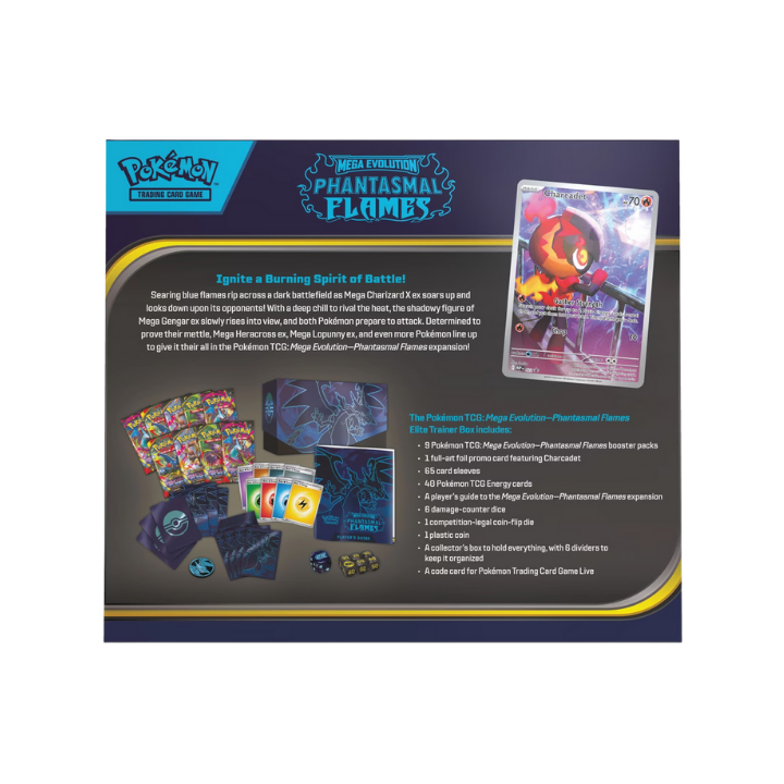 The Pokémon TCG: Mega Evolution – Phantasmal Flames Elite Trainer Box marks the return of Mega Evolution with powerful Pokémon ex cards, striking artwork, and a complete setup for both collectors and competitive players. Featuring fan-favourite Megas like Mega Charizard X ex and Mega Gengar ex, this expansion delivers high-impact pulls and classic Mega Evolution energy.