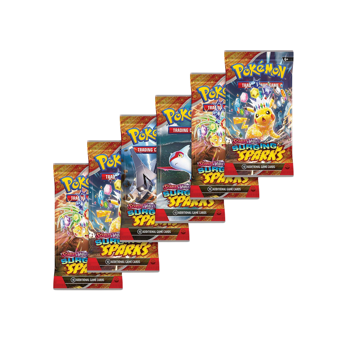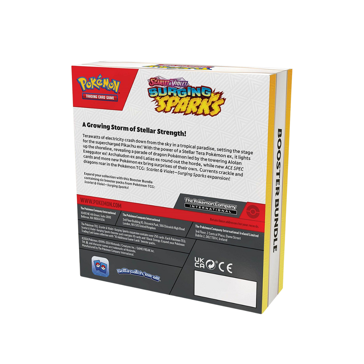 Check out the Pokémon TCG Scarlet & Violet Surging Sparks expansion, which comes with 6 booster packs packed with powerful cards. Pull the supercharged Pikachu ex and build your lineup with Dragon-type Pokémon like Alolan Exeggutor ex, Archaludon ex, and Latias ex. You’ll also find new ACE SPEC cards and more Pokémon ex that can shake up any battle. Lightning strikes, dragons roar, and electricity, every pack Pokémon brings action.