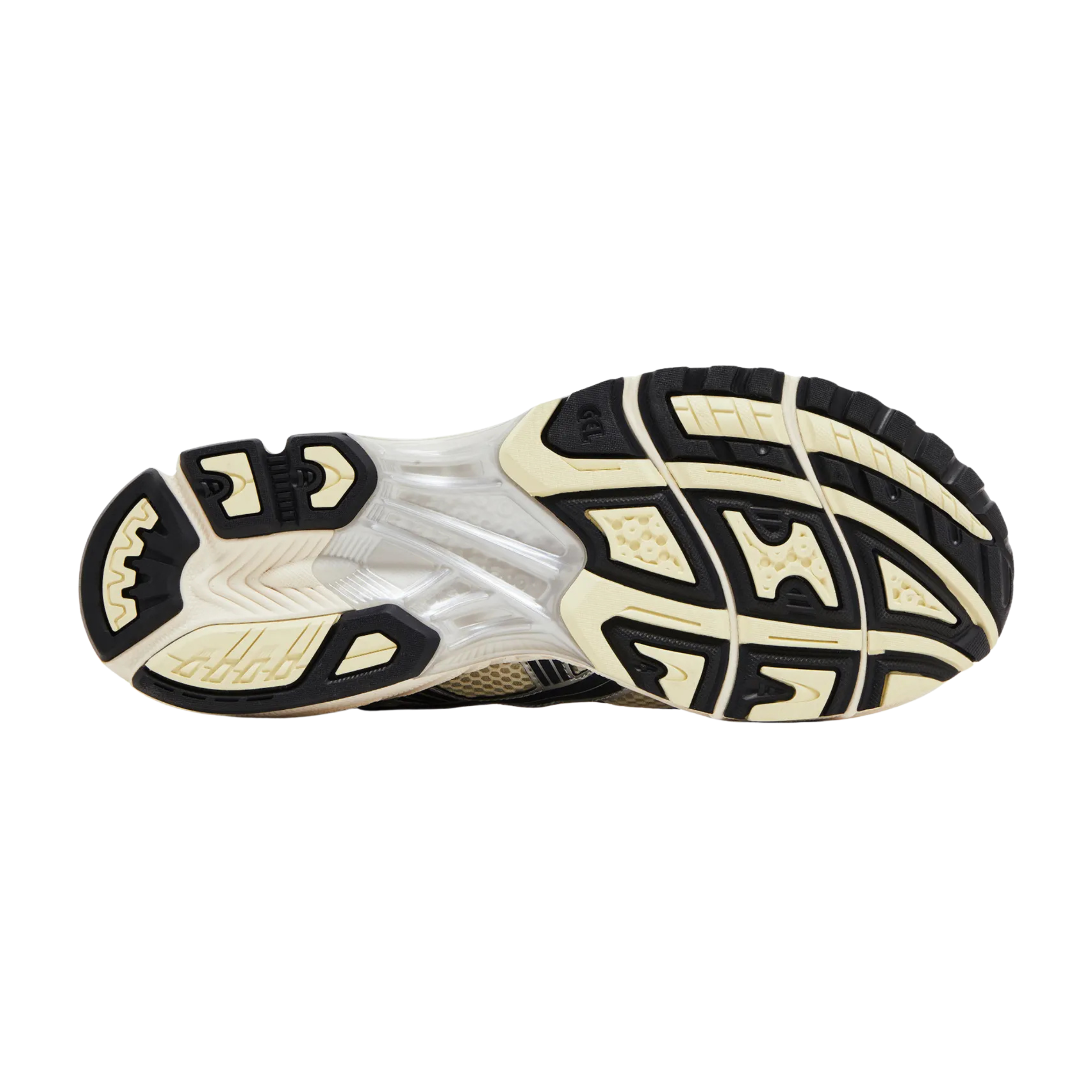 Down below, the black GEL cushioning is visible through the midsole to match the darker hues and grounding the lighter tones up top. Around the back heel, Gel-Kayano 14 branding is finished in black with a grey outline.