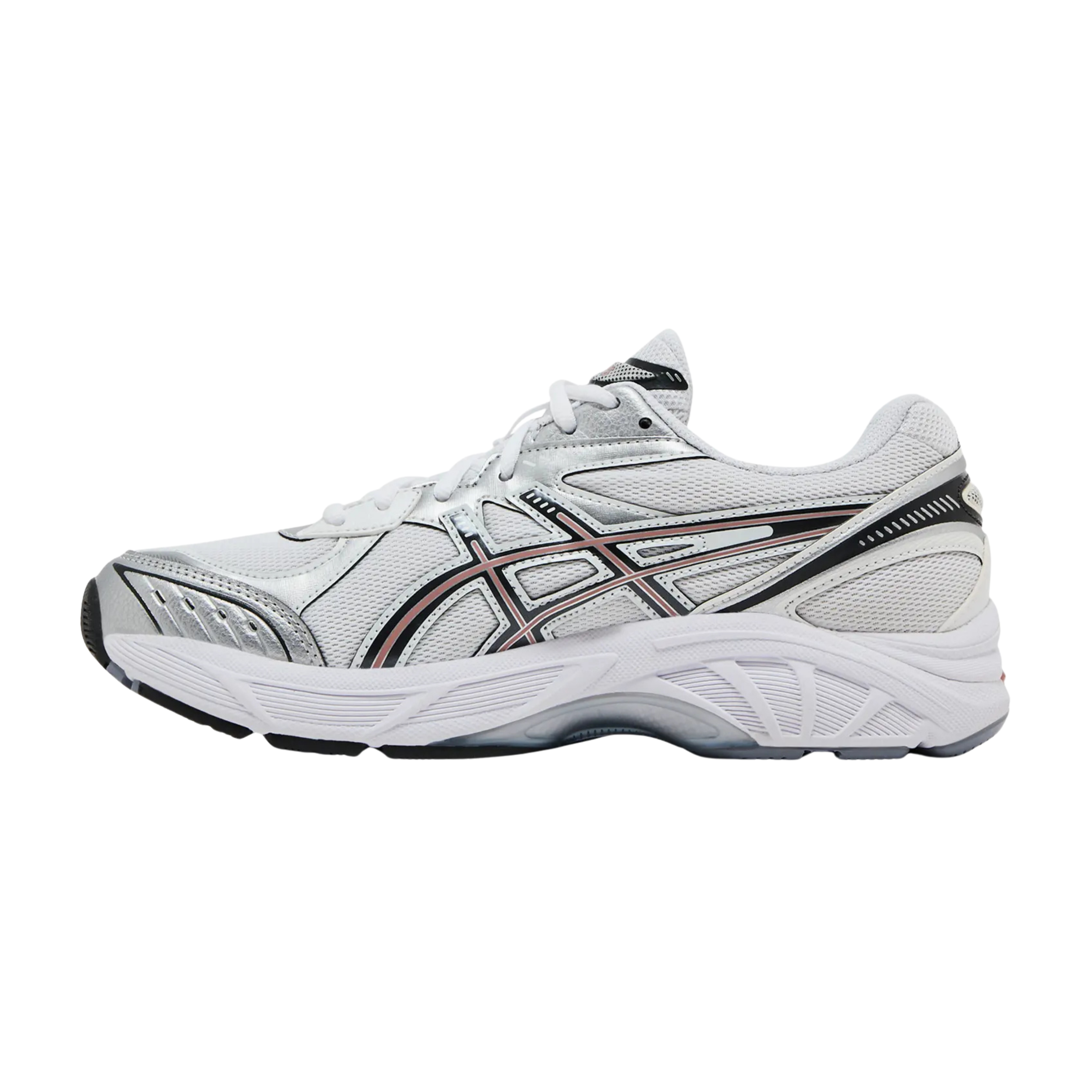 This colourway features a breathable white mesh upper paired with metallic silver overlays, staying true to the layered aesthetic that defined ASICS performance footwear of the era. The iconic side stripes are outlined with subtle Rose Rouge accents, giving the sneaker a versatile contrast that keeps the look sharp while remaining easy to style with daily looks.