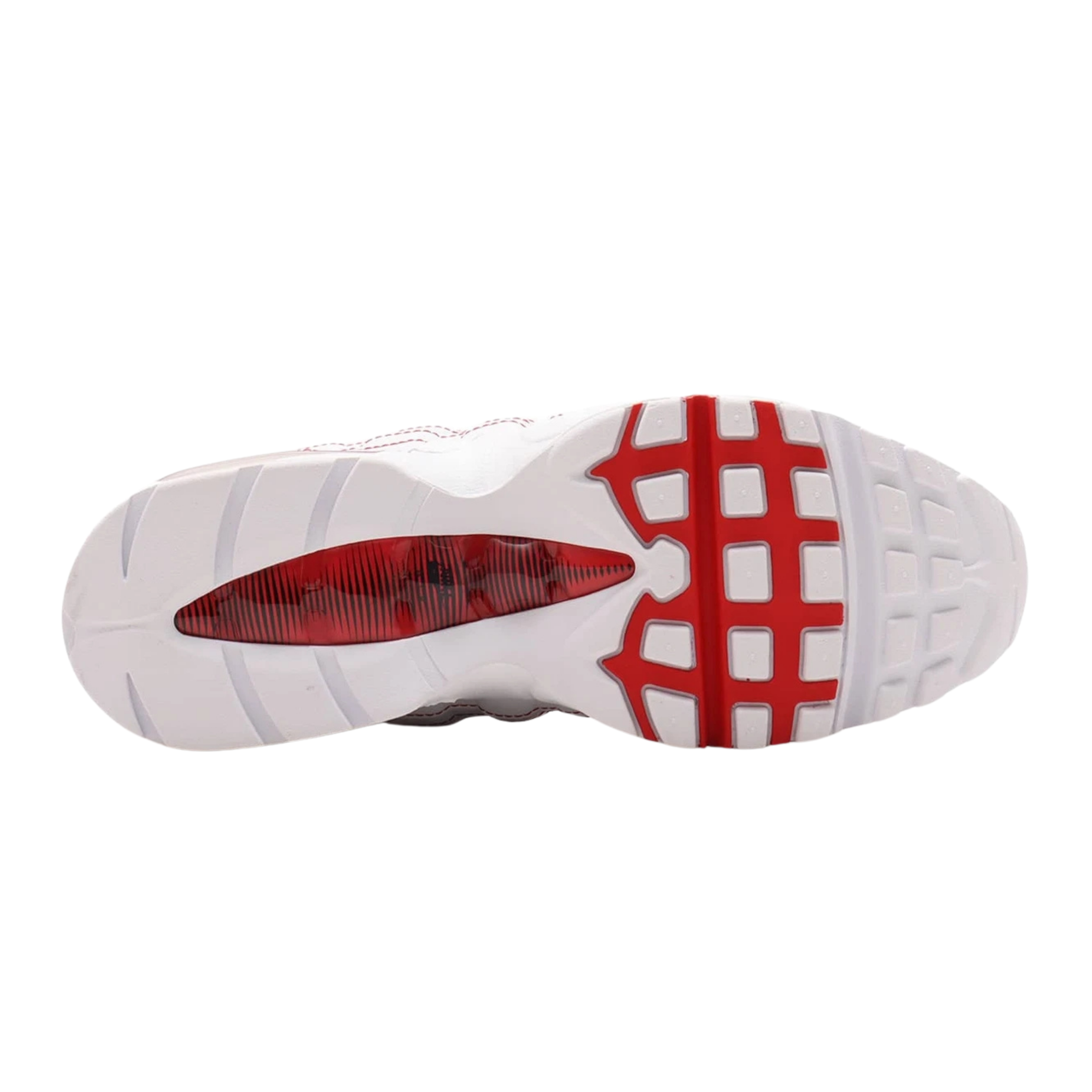 The original Air Max 95 features a see-through red big bubble, just like the classics from 1995. Going further into the details, this iconic silhouette has an oval Air Max badge stitched to the tongue in red, white and black and grey.